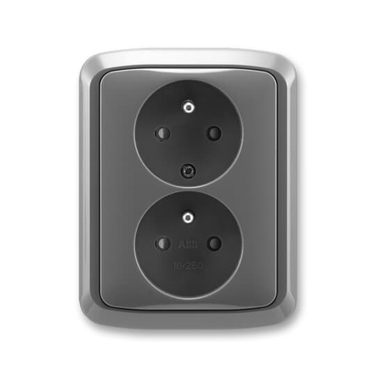 5512A-2359 S2 Zásuvka dvojnásobná s ochrannými kolíky, s clonkami, kouřová šedá
