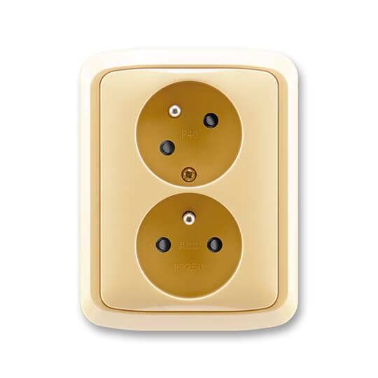 5513A-C02357 D Zásuvka dvojnásobná s ochrannými kolíky, s clonkami, s natočenou dutinou, béžová