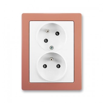 5513J-C02357 B1R3 Zásuvka dvojnásobná s ochrannými kolíky, s clonkami, s natočenou dutinou, bílá/cihlová