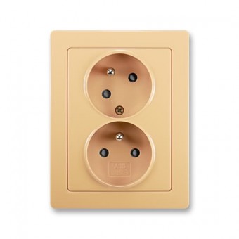 5513J-C02357 D1 Zásuvka dvojnásobná s ochrannými kolíky, s clonkami, s natočenou dutinou, béžová