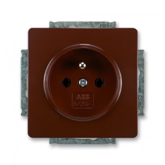 5518G-A02359 H1 Zásuvka jednonásobná s ochranným kolíkem, s clonkami, hnědá