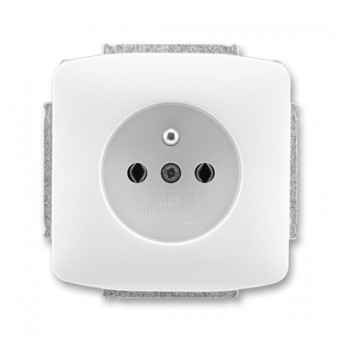 5519H-A02357 62 Zásuvka jednonásobná s ochranným kolíkem, s clonkami, bílá / kouřová černá