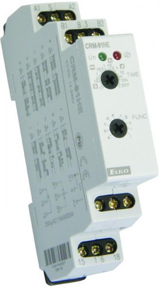 Časové relé s možností ovládání času externím ovládacím prvkem - potenciometrem, který je možné umístit např. do dvířek rozvaděče, panelu.CRM-91HE: multifunkční časové relé