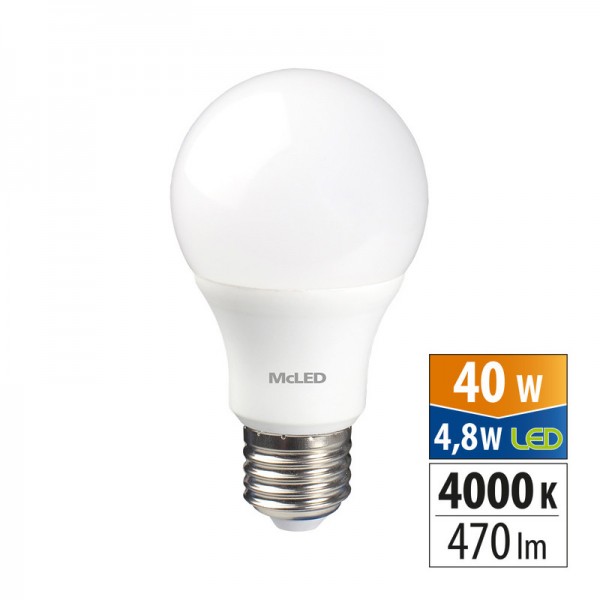 žárovka LED E27, 4,8W, 4000K, CRI 80, 470 lm, 200° use 360° /ML-321.097.87.0/